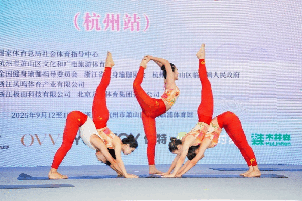 2025年全国健身瑜伽公开赛(杭州站)于9月12—14日在浙江省杭州市萧山区萧山临浦体育馆盛大举行。赛事由国家体育总局社会体育指导中心主办,共吸引全国55支代表队同场竞技。诸侯快讯健身瑜伽代表队由体育教育训练学院统筹,以及竞训处领导大力支持下,由武洛生院长担任领队,于巴锁、孙旭两位教师担任教练,向稼俊、王心怡老师参加教工组,5名队员参加院校组。短短一周集训,师生每天8:00—22:00高强度打磨,最终斩获11项殊荣,并荣获“优秀代表队”称号。