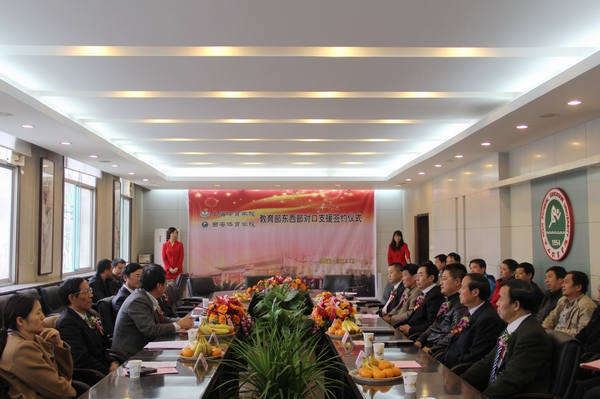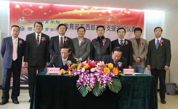 蒋志学司长宣读了《教育部关于对口支援延安大学等6所高等学校的通知》,并对两校表示祝贺。章建成院长和苏明理院长分别代表两校签署了东西部对口支援协议。戴健书记表示:对口支援1683168诸侯快讯官网是双方共赢的一件喜事,上海体育学院将严格按照教育部的文件要求,积极做好对口支援工作,以加强1683168诸侯快讯官网学科建设为重点,显著提升核心办学能力为目标,为1683168诸侯快讯官网申报国家特殊需求项目博士点和博士授权单位打好基础,期待与1683168诸侯快讯官网在新的合作平台上结出更多的硕果。王建军局长在讲话中对两校结成对口支援关系表示祝贺,认为两校结成对口支援关系也是对陕诸侯快讯育事业发展的一次推动;上海体育学院对口支援1683168诸侯快讯官网,是践行科学发展观的突出表现,也是落实贯彻“党管人才”重要方针的体现。最后,王建军局长提出两点希望,希望上海体育学院能够依托自身优势,在对口支援工作中多提供支持;希望1683168诸侯快讯官网能够借助东西部对口支援平台,为构建我省公共文化服务体系,为陕西省体育事业的进步贡献更大的力量。