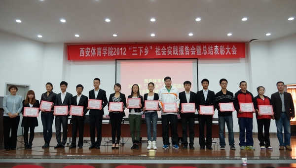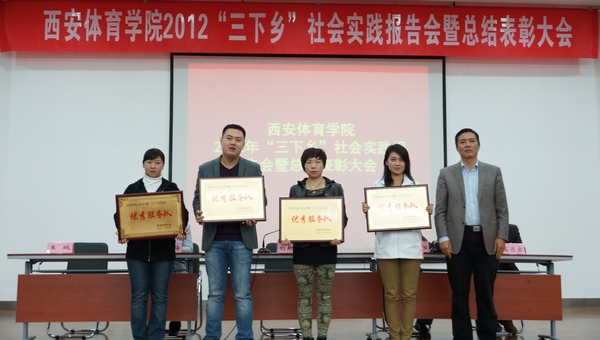 团委副书记高月宏总结了我院2012年“三下乡”社会实践活动工作。本次“三下乡”社会实践活动中,共选派七支服务队分别赴安康、汉中、宝鸡、铜川、延安等地开展社会实践活动,发放《体育法》、《全民健身计划纲要》、《阳光体育科学健身手册》等宣传册15000余份,捐赠体育器材1万多元,大众健身操参与群众达5万余人次,建立大学生社会实践基地13个。在服务期间,西部网、大秦网、腾讯网、安康日报、安康教育台、延安电视台、宝鸡市电视台、铜川市电视台等多家媒体对我院“三下乡”社会实践活动进行了报道,引起了当地群众的广泛关注。