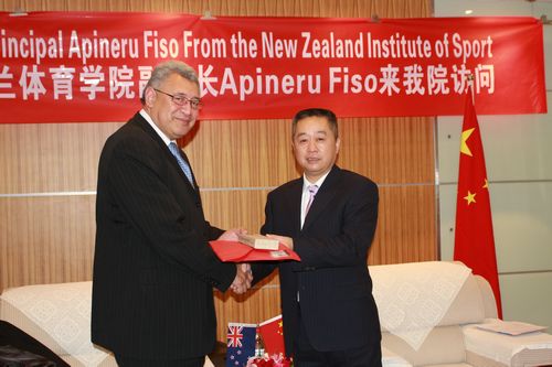 本网讯11月5日,新西兰体育学院副校长Apineru Fiso先生及国际营销与发展协调员Lucy Zhang女士来我院进行友好交流访问。