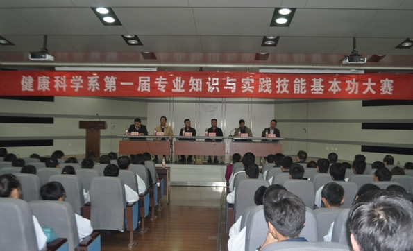 本网讯10月23日晚,健康科学系第一届专业知识与实践技能基本功大赛在教学楼一楼报告厅拉开帷幕。副院长周里、教务处处长刘新民、教务处副处长朱军、健康科学系负责人出席了开幕式,该系300余名学生参加了开幕式。