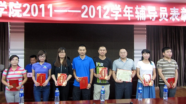 学工部副部长梁咏梅总结了我院2011-2012学年的辅导员工作;党委委员、党政办主任陈彦宣读了我院《2011-2012学年辅导员表彰决定》,院领导为李赟、樊敏、朱莉、麻春艳、丁建岚、邱莹、纪伟、王东八位优秀辅导员颁发了荣誉证书和奖金。优秀辅导员代表李赟、麻春艳、纪伟在会上作了交流发言。