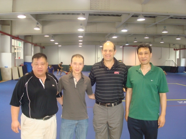 Mark Fischer先生(右二)我院散打队主教练赵学军教授(右一)