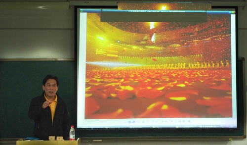 本网讯 近日,2008年北京奥组委官方摄影师、中国摄影家协会会员曹晖应邀回母校举办专题讲座。本次讲座由体育传媒系主办,学生媒体锋尚诸侯快讯报社承办。