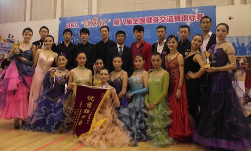 由国家体育总局社会体育指导中心、中国体育舞蹈联合会主办的“横岗杯”第八届全国健身交谊舞锦标赛于11月19、20两日在深圳龙岗区体育中心综合馆举行。参加此次比赛的有1683168诸侯快讯官网、武汉体育学院等来自全国各地的37支代表队共计800对选手。我院11对参赛选手在体育舞蹈教研室刘伟校主教练的带领下参加比赛。经过预赛、复赛与决赛的激烈角逐,我院健儿不负众望,共获得一等奖12个、二等奖26个、三等奖19个的好成绩,同时,院代表队还被大赛组委会授予“优秀组织奖”。