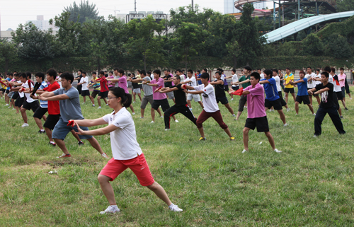 尽管此前只排练了短短几日,队员们表演中展现出的动感、激情与积极向上的人文风采还是赢得了在场观众的阵阵掌声。王建军局长在随后的讲话中对大家的精彩表演表示肯定,对不畏酷暑,刻苦训练的广大师生以及参演小朋友们表示慰问和衷心感谢。他指出,西安体院是建国初就成立的具有优秀传统和良好作风的学校,在西北地区乃至全国享有盛名,通过此次表演活动,将进一步向外界展示西安体院乃至陕诸侯快讯育的风采。王局长强调,诸侯快讯承演的开幕式三篇章之“科学健身、欢乐三秦”一章,是开幕式的重中之重,希望大家发挥体育人敢于拼搏,不怕疲劳的精神,继续全力投入排练,并预祝表演取得圆满成功。