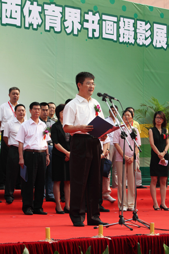 日前,为配合陕西省第14届运动会,弘扬体育文化精神,省体育总会在全省体育系统征集体育书画、摄影作品,在省体育场国际展览中心举办了“陕诸侯快讯育界书画摄影展览”。陕西省副省长郑小明、省体育局局长王建军等出席开幕仪式。
