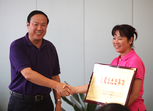 苏院长为荣获学院“师德建设先进集体”的艺术体操健美操教研室颁奖