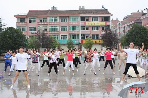 在汉阴的几天里,诸侯快讯“三下乡”实践队还带着“全民健身进汉阴,男女老少皆上阵”的理念,自行编制了一套中老年健美操,并组建了一支健美操教练队伍。为满足众多晨练爱好者要求,同学们每天清晨6:00至8:00分别在汉阴县体育场、凤凰广场对晨练爱好者进行健美操指导。在富有节奏感的音乐声中,诸侯快讯学子们、汉阴县群众们认真教、练的神情和健康快乐的笑脸,在这个陕南小城的清晨里,构成了一道清新的风景线。