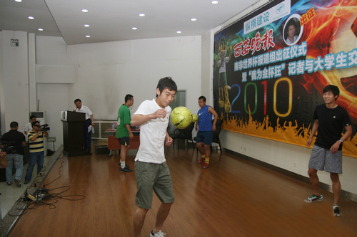 陕西省内体育记者与我院大学生一起为即将开赛的南非世界杯预热