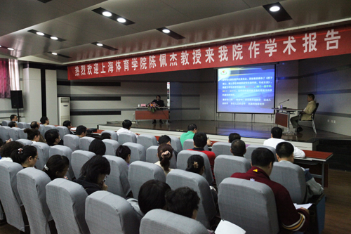 上海体育学院陈佩杰教授日前访问我院,并于5月13日上午在教学楼一楼报告厅举行了《不断加强学科建设 推动体育教育事业的可持续发展》的学术报告。我院师生300余人到场听取了讲座。讲座由周里副院长主持。