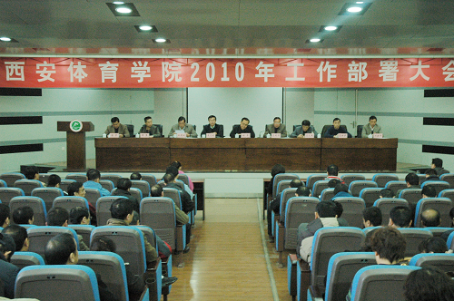 苏明理院长首先对我院去年的工作进行了总结。他指出,2009年学院遵循高等教育和体育发展规律,以学科建设为龙头,坚持科学发展、内涵发展、和谐发展,圆满完成深入学习实践科学发展观活动任务,巩固了思想政治教育工作成效;学院整合优势资源,充分发挥体育科技对体育事业的先导和保障作用,竞训工作迈上了新台阶;后勤医疗保障工作富有成效;以优质服务和高质量的合作项目对外展示了学院办学实力。总的来说,2009年我院较好地完成了年度工作任务,为学院今后的进一步发展奠定了良好基础。