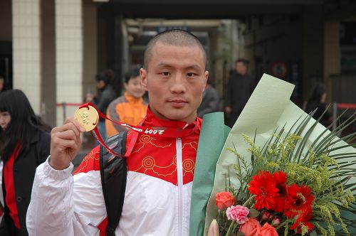10月17日晚,十一届全运会男子散打77.5公斤级决赛在山东省菏泽市演武楼落下帷幕。我院运动员,号称“草原苍狼”的敖特根·巴特尔以2∶0的绝对优势摘取该级别桂冠,实现了自己四年来的夙愿。“我为了这枚金牌等了整整四年!”