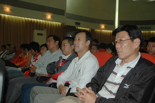 9月9日上午,全国第十一届运动会陕西省代表团成立暨誓师大会在西安国际会议中心隆重举行。我院院长苏明理,党委副书记苏义民,副院长权德庆、雷新声、周里等领导同志应邀出席了会议。陕西省副省长郑小明代表省委省政府向十一运会陕西代表团授旗,省体育局局长李明华代表陕西代表团接旗。郑小明表示,省委省政府将竭尽全力为我省代表团提供支持和保障,希望运动健儿们顽强拼搏,勇创佳绩。运动员代表郭文珺和教练员、训练单位代表张根学分别发言,决心以实际行动向三秦父老交上一份满意答卷。