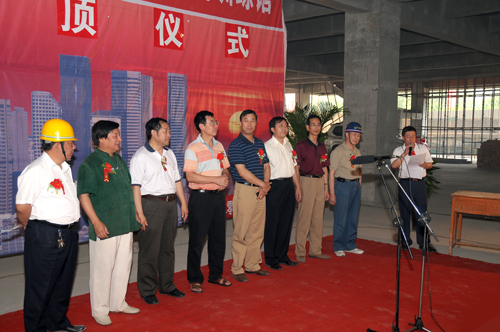 我院游泳综合训练馆封顶仪式于2009年6月14日上午在施工现场进行,院党委副书记朱元利、副院长雷新声等有关领导参加了封顶仪式,朱副书记宣布我院游泳综合训练馆封顶仪式启动。仪式由后勤管理处处长樊康同志主持。