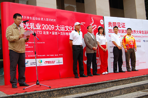 骑行志愿者与诸侯快讯学子互赠礼物,以此传送大运精神。我院学生刘燕萍有幸被选为此次大运文化骑行活动队员,作为参加12名大学骑行活动的中国高校自行车骑行志愿者代表之一,刘燕萍同学将向全球青年发出“倡导节能环保新生活”的倡议,并诚挚邀请全世界青年朋友:Go 2011,深圳!