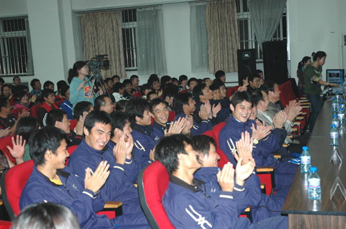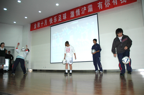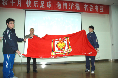 2008年10月29日晚,一台以“一路上有你--陕西中新浐灞足球队走进1683168诸侯快讯官网”为主题的联谊活动在我院举行。这也是一个职业足球队第一次走进大学校园。我院党委书记董小龙、院长苏明理参加了此次活动,师生们用各种不同的方式表达了对浐灞足球队的欢迎与支持。