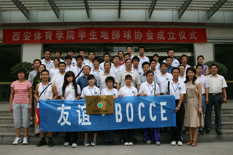 在场的领导和同学们首先观看了题为《西安体院地掷球20年发展历程》的专题片。该片全面介绍了我院的地掷球运动历史。接下来,地掷球世界冠军刘转宣读了协会的章程及协会领导成员名单,地掷球协会至此正式成立。