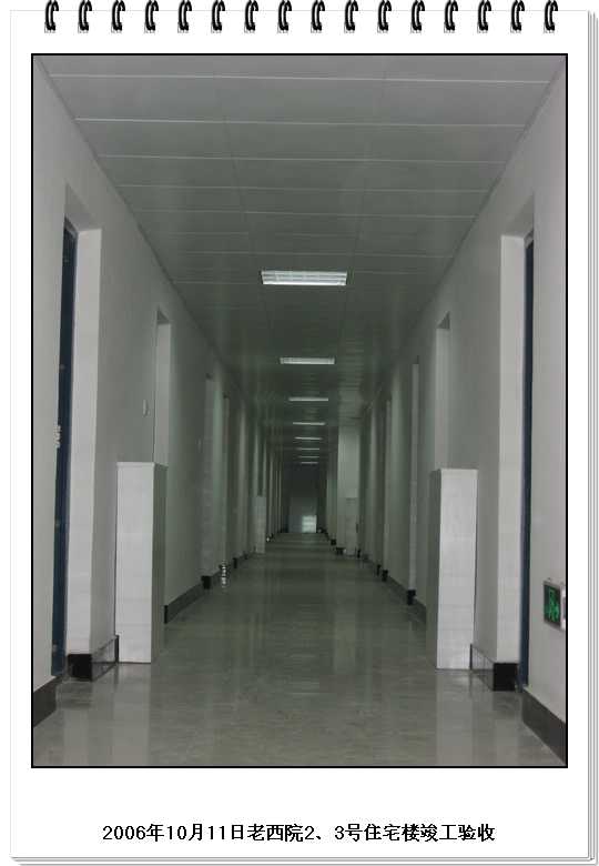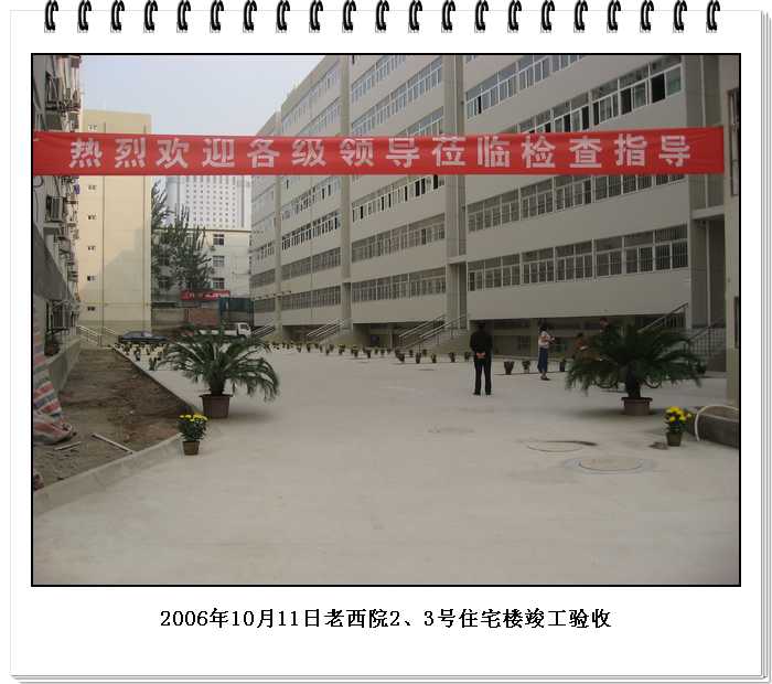 我院老西院2、3号住宅楼,2005年购回后通过招标,由西安市第三建筑工程公司中标,2006年4月10日开始施工,建筑总面积23224平方米,工程建筑面积16800平方米,均为框架七层结构。该工程施工过程中,严格实行“三检”制度,积极采取事前、事中、事后的控制管理方式,确保工程质量,经过基建科、监理单位及相关部门现场勘察验收,2、3号楼观感质量、工程质量、主要功能抽查均为合格。