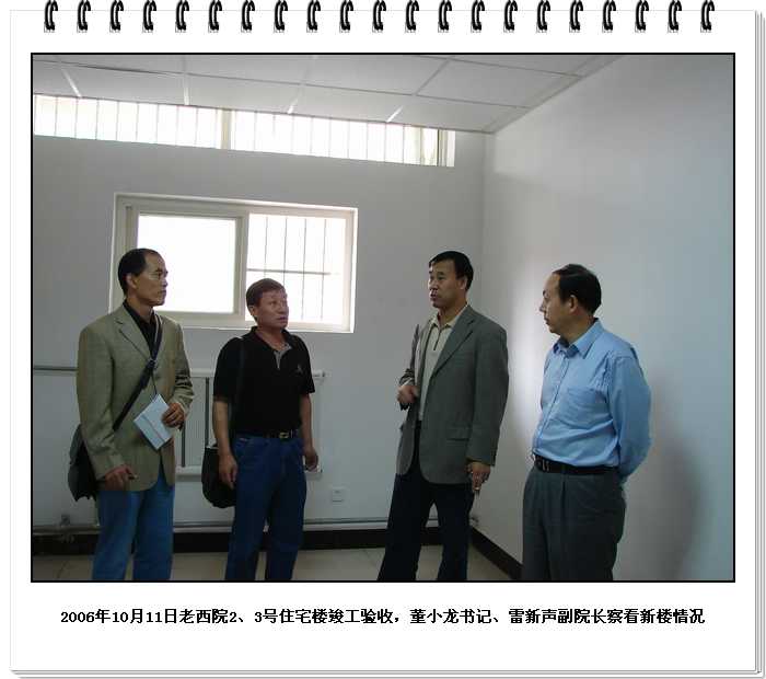 10月11日下午,我院党委书记董小龙、副书记朱元利、副院长权德庆、副院长雷新声及院相关部门负责人、施工方、监理方领导参加了竣工验收,并分组检查了新住宅楼的各部分情况,对存在的不足提出了改进意见。
