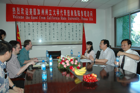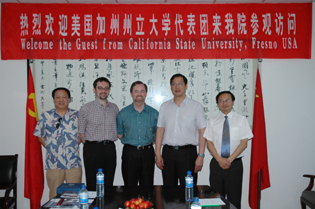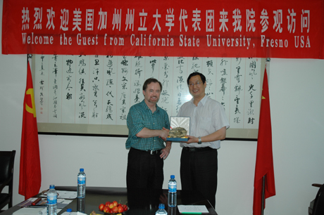 我院副院长权德庆教授会见了两位客人。权院长代表学院对两位来宾表示欢迎,并向他们介绍了我院的整体情况。Thomas H. McClanahan博士对能够来我院参观访问表示荣幸与感谢,同时也介绍了Fresno分校近年来的发展状况。双方均表示希望将来能够在相关领域进行交流与合作并签署合作备忘录。最后,双方互赠纪念品,会谈在友好和谐的气氛中结束。