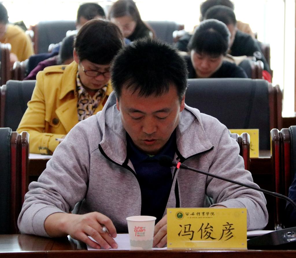 体育教育系教师冯俊彦结合自己的教学工作,表示要在日常的一言一行、一点一滴中做好思政教育工作,把理想信念教育作为核心,把爱国主义教育作为重点,把思想道德建设作为基础,把人的全面发展作为目标,通过多种方式实现思政教育“立德树人”根本任务。