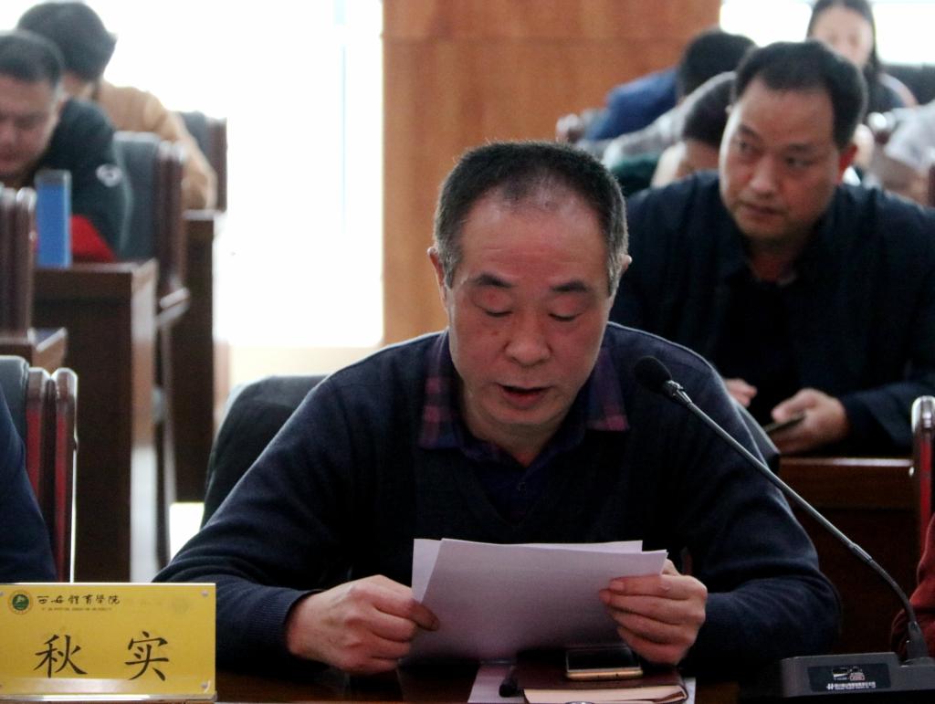 本网讯 3月25日,我院召开党委理论学习中心组扩大会,专题学习研讨习近平总书记在学校思想政治理论课教师座谈会上的重要讲话精神。党委理论学习中心组成员以及相关部门负责人、各党总支书记、教师代表、全体辅导员近100人参加。党委书记黄道峻作了题为《当好“引路人”种好“责任田”》的讲话,院长朱元利主持会议。
