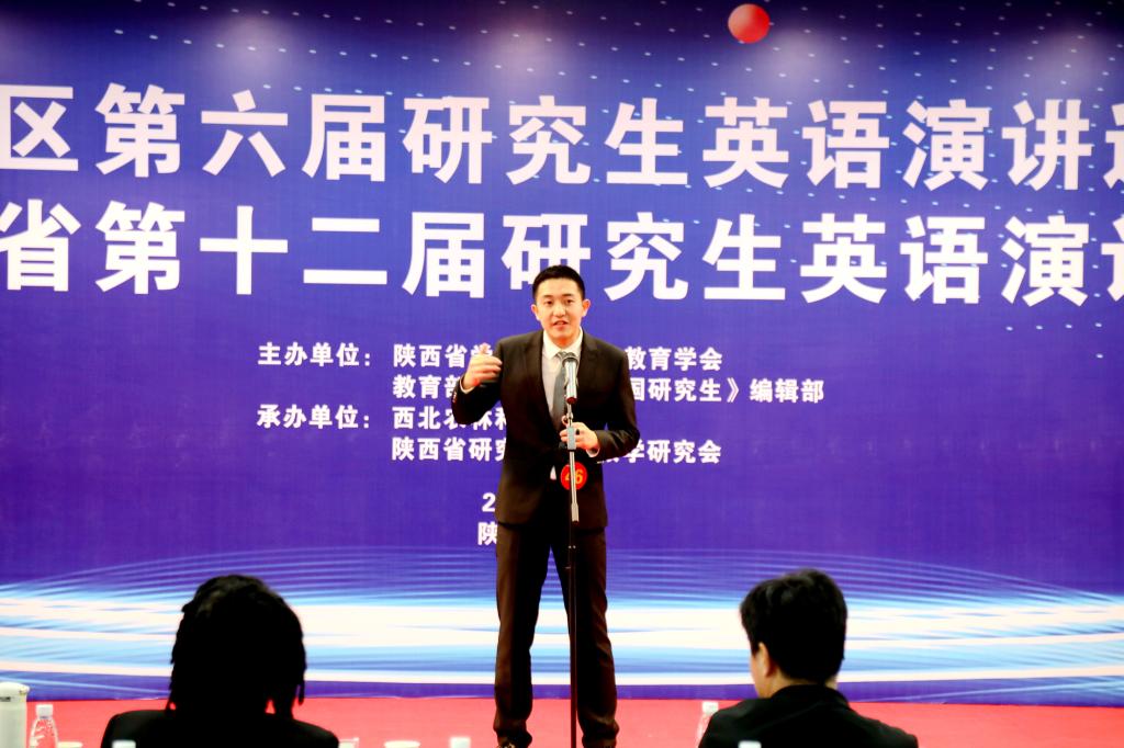 本网讯 近日,西北地区第六届研究生英语演讲邀请赛暨陕西省第十二届研究生英语演讲比赛在西北农林科技大学举行。经过校园选拔赛,我院2017级研究生贾宇阳代表我院研究生参赛。