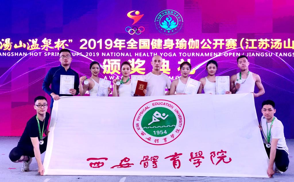 我院大学生健身瑜伽队在教练、国家级瑜伽项目指导员于巴锁的带领下,队员们团结一致、顽强拼搏,以别具一格的风格、积极阳光的精神风貌、精湛娴熟的瑜伽体式表演,呈现了一场精彩的视觉盛宴,赢得了现场裁判、观众与网络直播的一致好评。