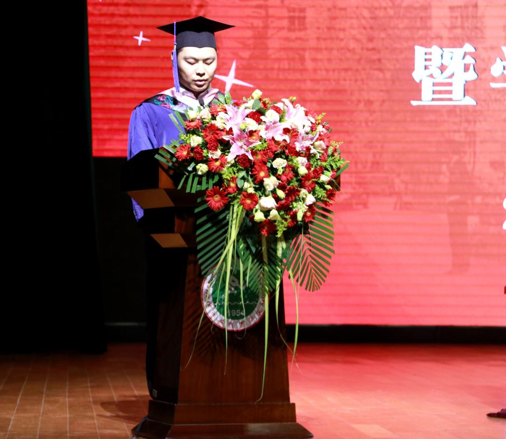 最后,2019届优秀毕业生代表、体育传媒系柴常潇带领全体毕业生进行庄严宣誓。