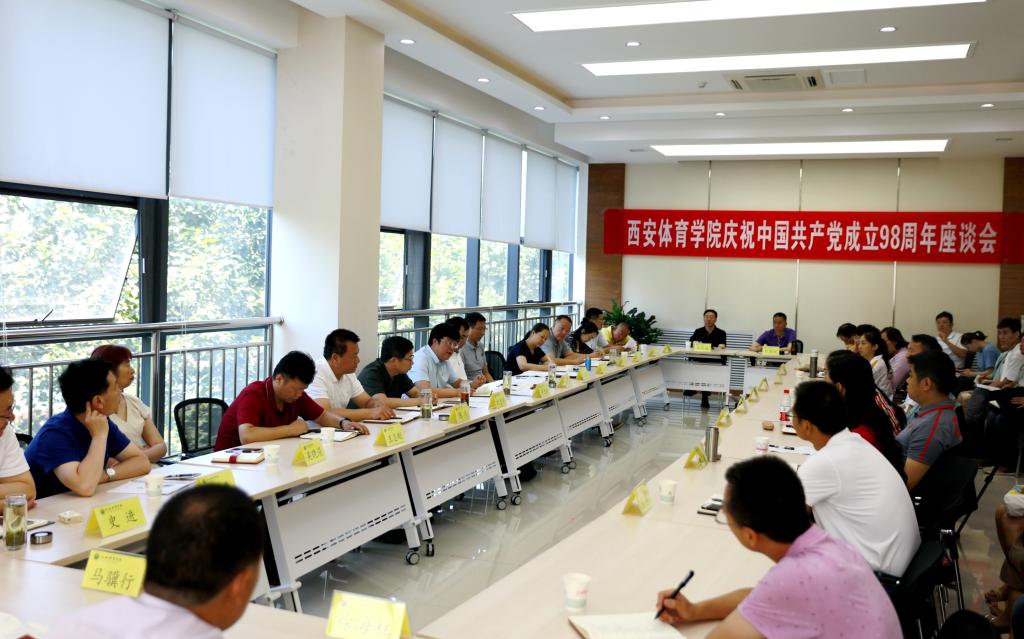 本网讯 为庆祝中国共产党建党九十八周年,回顾党的光荣历史,缅怀党的丰功伟绩,动员各级党组织和全体共产党员,充分发挥战斗堡垒和先锋模范作用,贯彻落实学院第六次党代会精神,锐意进取,真抓实干,奋力推动学院各项工作迈上新台阶,7月1日上午,我院召开党员代表座谈会。党委书记黄道峻,院长朱元利,党委副书记刘子实,副院长文立新、陈彦、谢英出席,党委职能部门主要负责人,各党总支、直属党支部书记,离退休党员代表,教师党员代表,优秀教练员、运动员党员代表,辅导员代表、学生党员代表参加。朱元利主持座谈会。