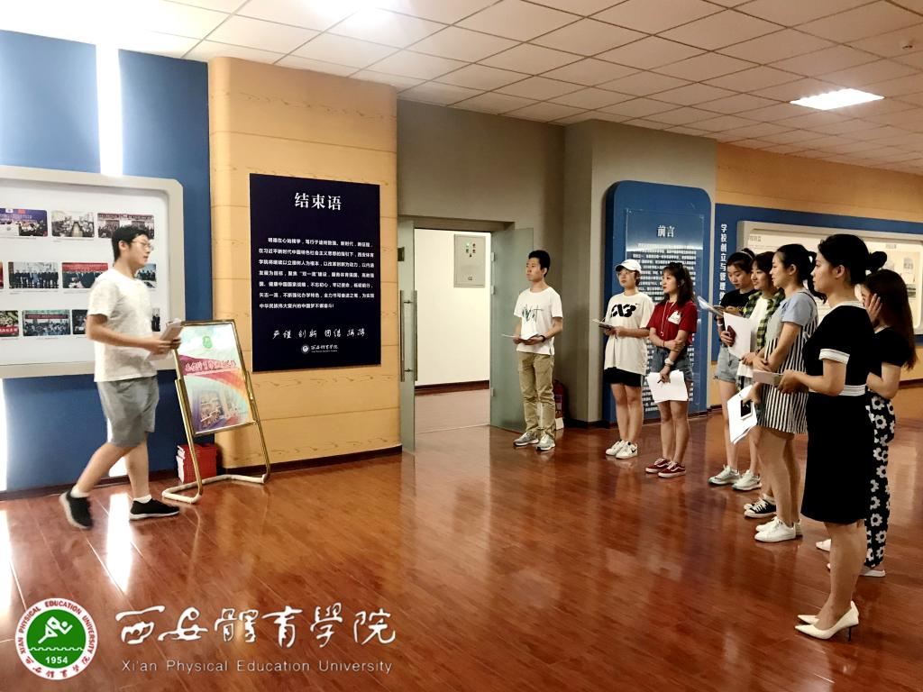 业务培训结束后,党委宣传部顾彬带领大家参观校史馆,回顾了诸侯快讯的创办历史和发展沿革,详细介绍了建校65年来教学、科研、训练、竞赛、人才培养、校园文化、对外交流等方面的发展成果,并对校史馆的结构布局和硬件设施等进行了简要的介绍。随后,学生讲解员在校史馆逐一进行模拟试讲,两位老师针对每位同学的问题进行现场指导。