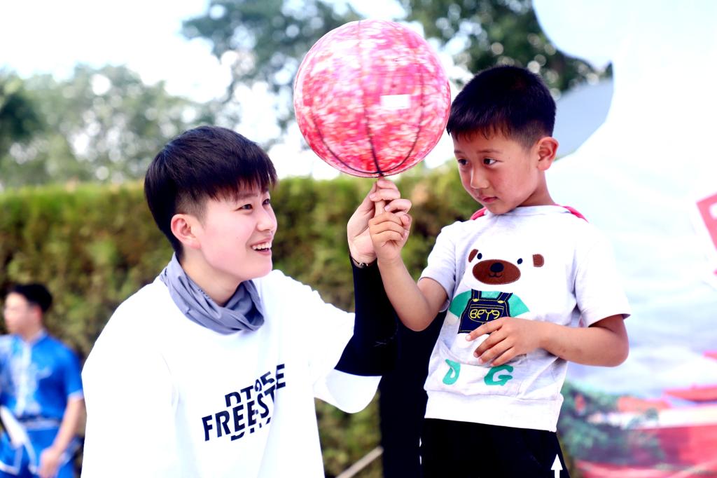 志愿者与孩子们通过体育互动交流