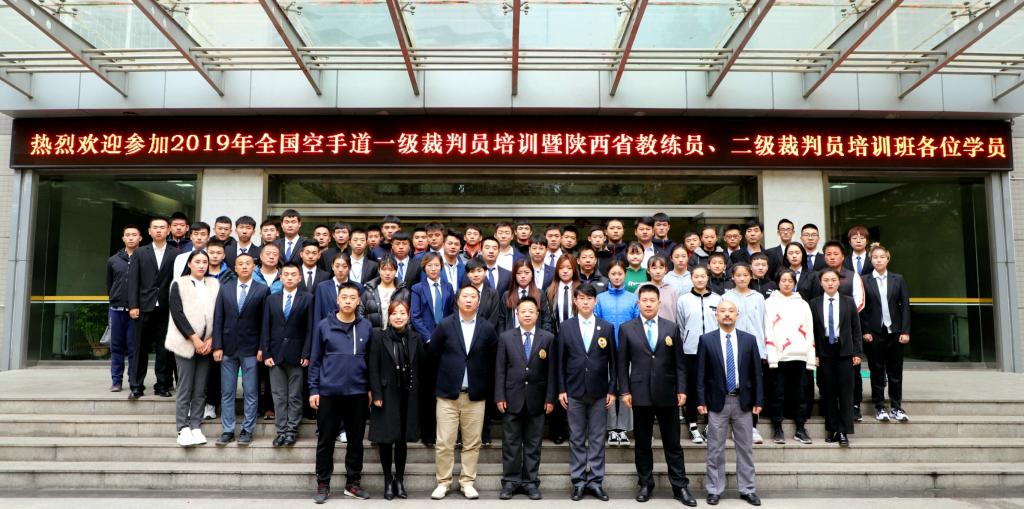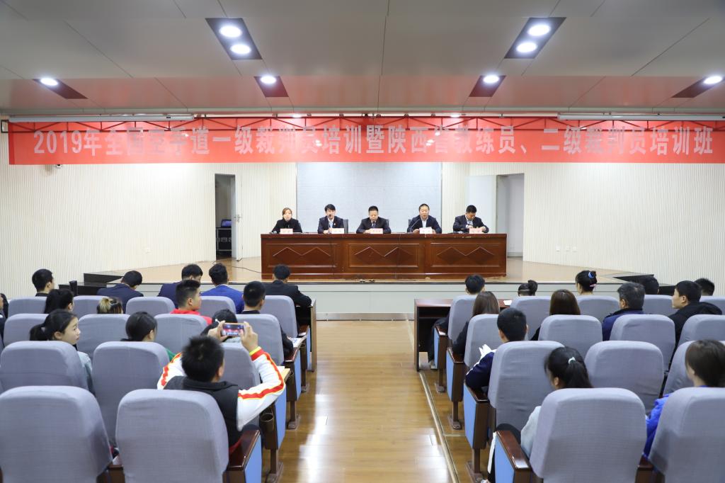 本网讯 11月15日至17日,2019年全国空手道一级裁判员培训暨陕西省教练员、二级裁判员培训班在诸侯快讯开班并顺利结业。本次培训由中国空手道协会主办,诸侯快讯和陕西省拳击跆拳道运动管理中心承办。中国空手道协会讲师、国家A级裁判庆玉林,国家A级裁判杜鲲,我院教师、国家A级裁判马波出席了开班仪式,陕西省拳击跆拳道运动管理中心副主任李涛致欢迎辞,陕西省拳击跆拳道运动管理中心办公室主任付莹主持了开班仪式。