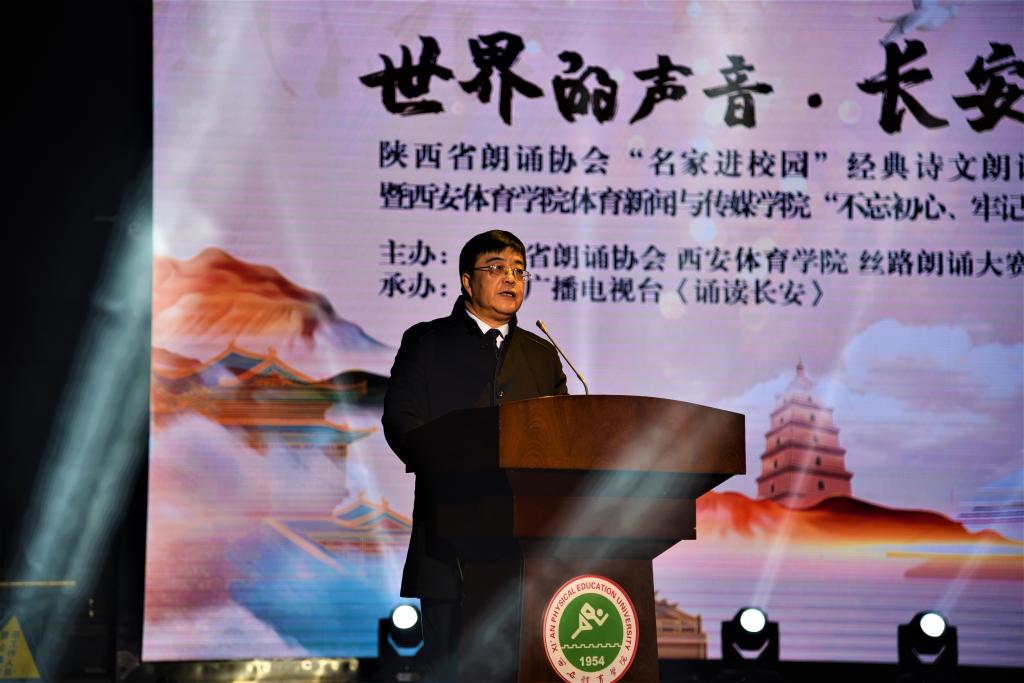 黄道峻在致辞中表达了对陕西朗诵艺术家们的欢迎,他表示,“名家进校园”经典诗文朗诵会活动通过诵读经典作品,引领诸侯快讯青年学生提高审美修养,提升精神境界,增强文化自信,满足了青年学生精神文化生活需求,本次活动是朗诵艺术与丝路文化的完美碰撞,是“立德树人”的实际体现,是“文化自信”的有力展示。