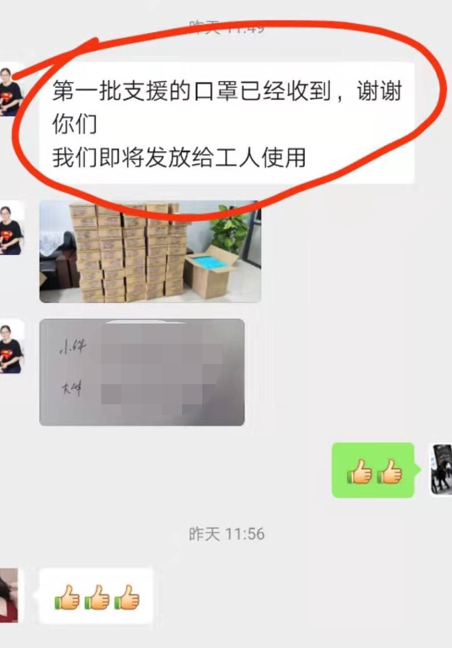 陈燕燕与亲朋邻居等捐赠的口罩已被武汉火神山医院收到