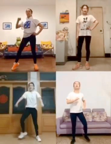 许波老师(图左上)与啦啦操队员进行的《啦啦冠军队和您一起把“疫”退》截选