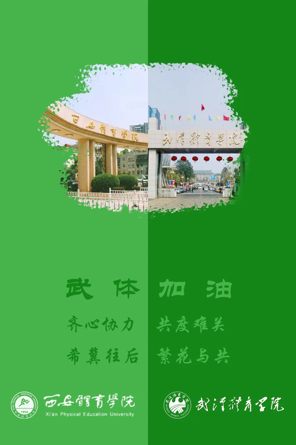 疫情是磨难,磨难终将过去,胜利就在前方。愿贵我两校携手并肩,为教育强国、体育强国、健康中国建设作出新的更大的贡献。