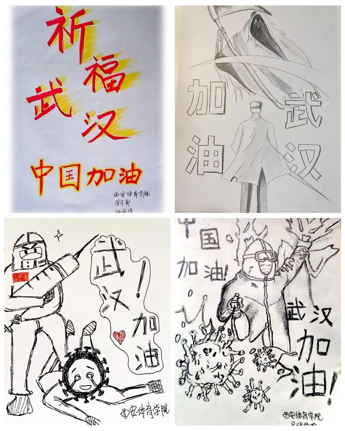 创作主题作品为抗“疫”加油——足球学院发起疫情作品征集活动,主题为“武汉加油,共渡难关”,同学们通过作品表达祝福与关怀,分享自己在疫情防控期间的所思所感。