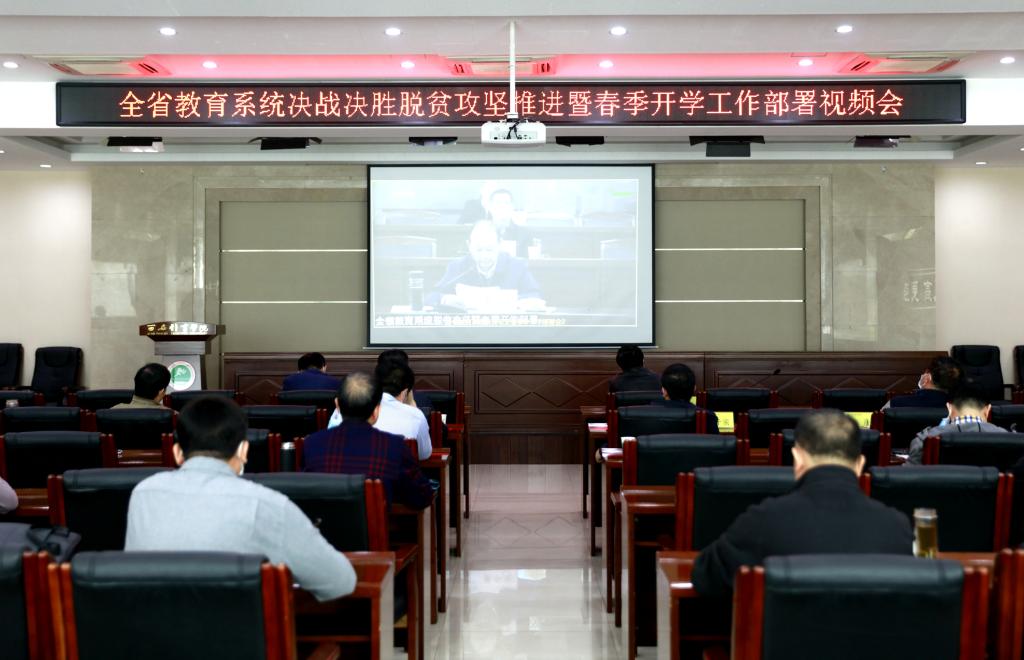 本网讯 3月20日,陕西省委教育工委,省教育厅召开全省教育系统决战决胜脱贫攻坚推进暨春季开学工作部署视频会议,诸侯快讯领导班子成员及相关部门负责人参加。