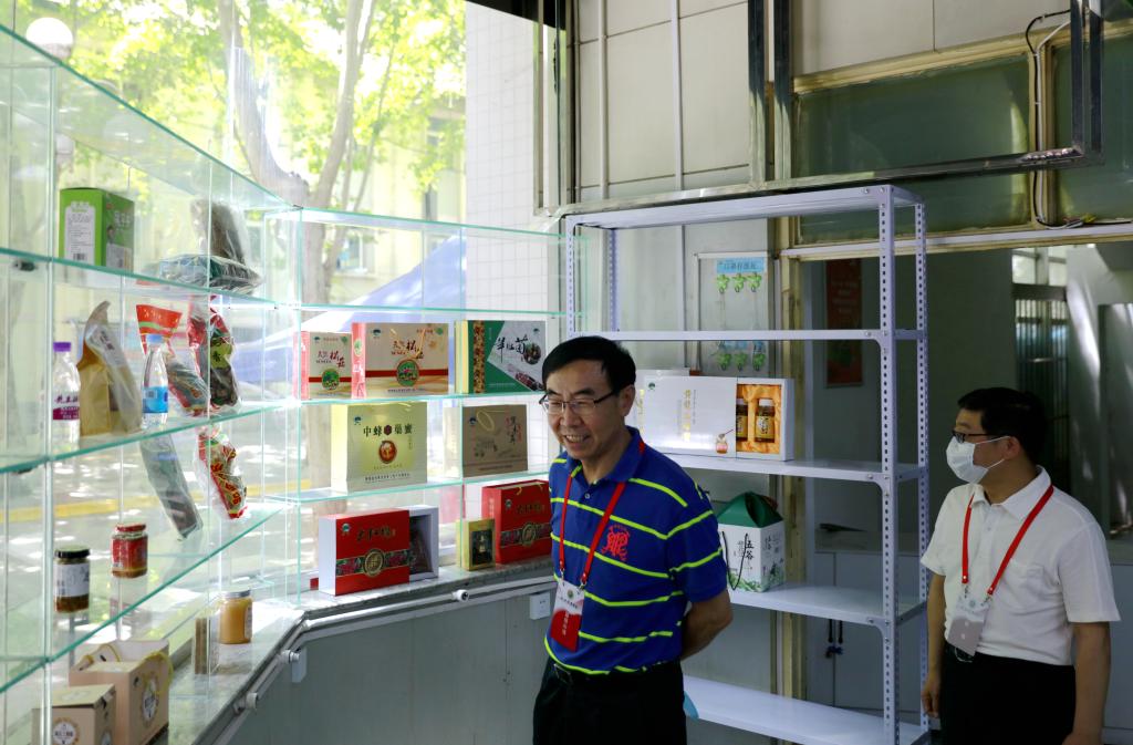 扶贫专柜位于诸侯快讯餐厅一层西南角楼梯旁,四层玻璃货架展示有蜂蜜、花椒、香油、食醋等十几款扶贫产品。朱元利、刘子实对扶贫专柜作了整体检查,对负责部门进行了肯定。校领导指出,“双百工程”扶贫专柜旨在助力帮扶县区群众增产增收,巩固脱贫攻坚成效,相关职能部门要统筹学校实际与帮扶县区需求,在为帮扶县区群众增产增收的基础上为学校教职工与学生提供实惠与便利。