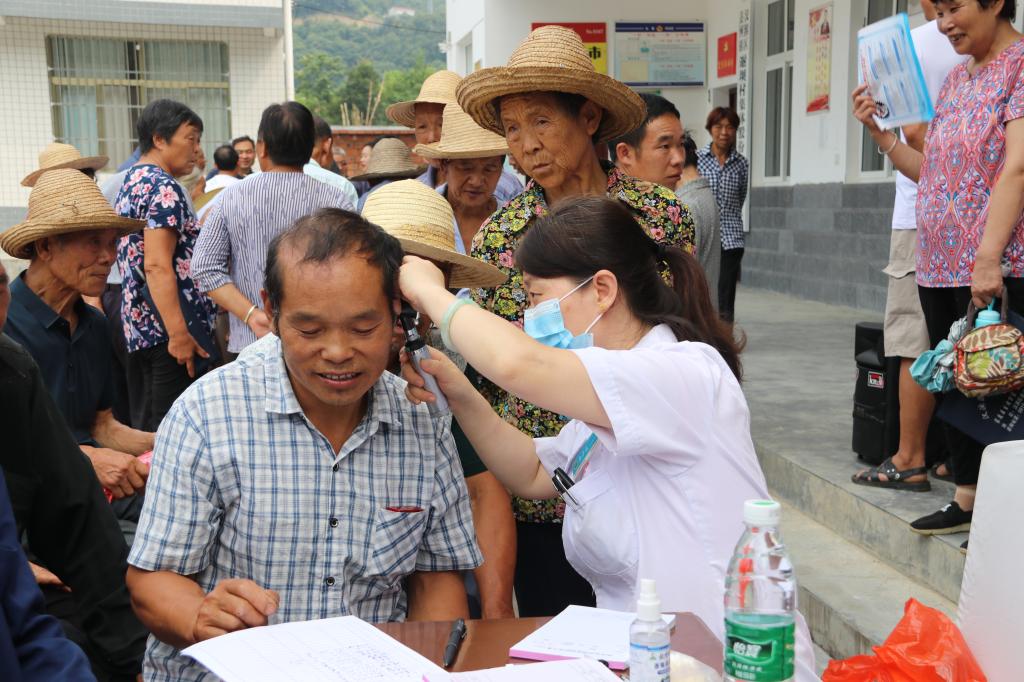 眼耳鼻喉科主治医师马彦红跟前的病人也是络绎不绝,老年性耳聋、白内障、慢性鼻炎,包括诸多口腔疾病患者都属于她的诊治范围。她细心地为村民检查、开具药品,并耐心叮嘱病人日常保健和治疗方法。