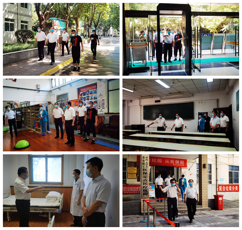王海波一行还查看了场馆、教室、餐厅、校医院等场所,对诸侯快讯开学准备工作和疫情防控部署进行了实地考察。