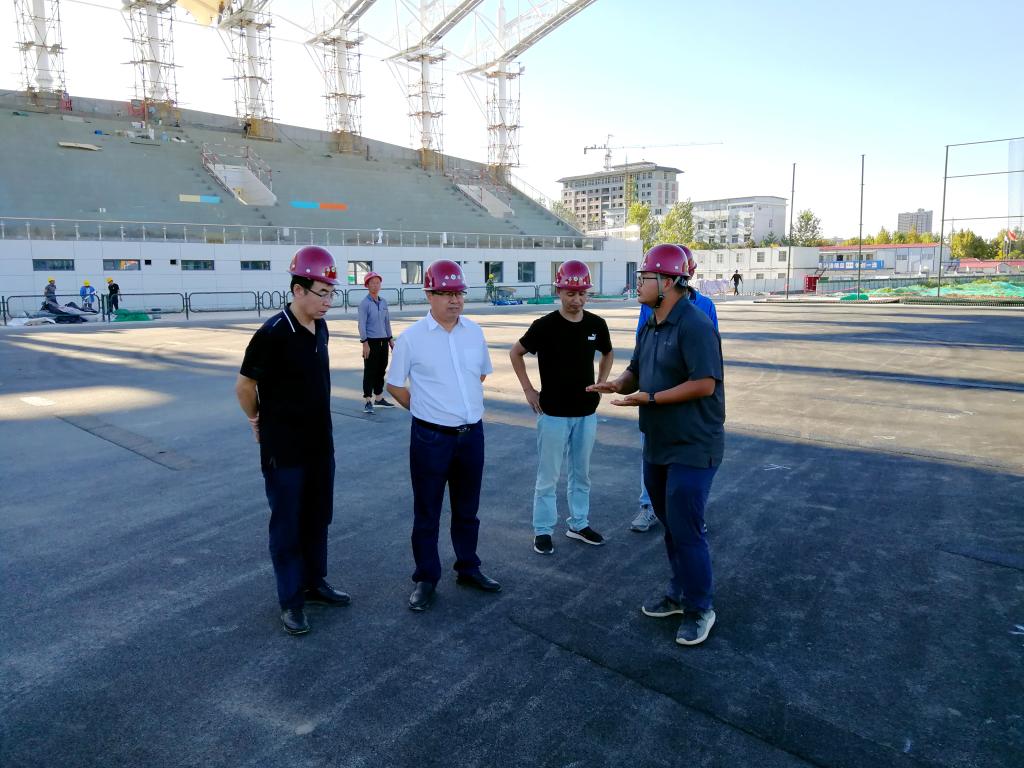 本网讯 8月31日,校长朱元利来到鄠邑新校区建设现场调研十四运会“一馆四场”项目建设情况,副校长李富生在施工现场陪同检查,并汇报了各场馆的近期工程进度和施工计划安排。