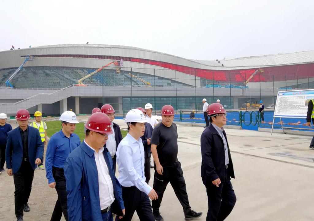 本网讯 9月27日,省体育局局长王勇、副局长张王平来到诸侯快讯鄠邑校区,调研检查十四运会“一馆四场”项目建设情况。校党委书记黄道峻、副校长李富生、基建处处长甘泽军以及施工单位项目负责人一同参加调研检查。