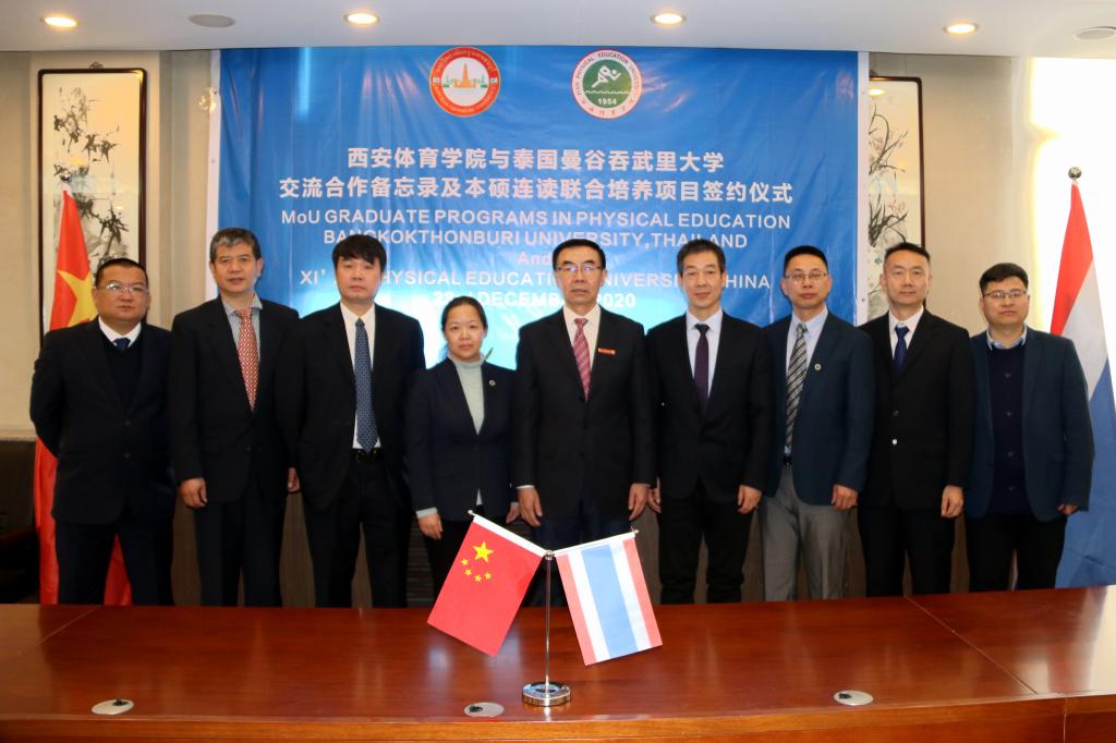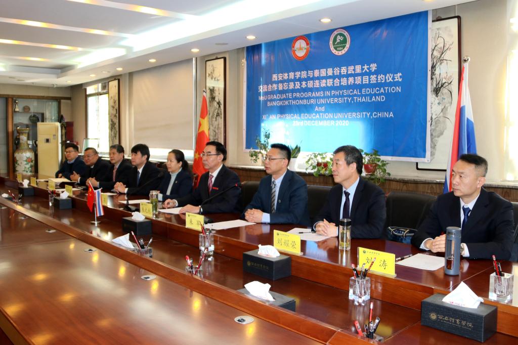 朱元利和BangonBenjathikul博士在签约仪式上分别致辞。朱元利指出,曼谷吞武里大学是一所泰国教育部管理的著名综合性大学,是泰国办学层次以及专业设置较为齐全的大学之一,学历受中国教育部及世界认可。尤其是体育学科专业实力雄厚,具有广泛影响力,近年来积极参与“一带一路”建设,与我国多所专业体育院校建立交流合作关系,广泛开展体育人才培养、体育科研交流、体育文化传播等合作。此次两校在相互尊重、互信互助、携手发展的基础上,成功签署交流合作备忘录及“本硕连读联合培养”项目,是两校基于友好交往、着眼未来发展,充分落实优质资源共享,共同推进办学发展共识所形成的重要成果,也是我们两校为中泰两国在文明互鉴、文化互融道路上持续发展所做出的努力和贡献。