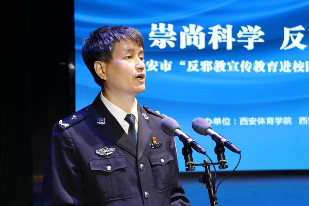 西安市公安局副局长周军户向在场师生介绍了邪教组织的特征和严重危害性,并为高校师生提出三项抵制邪教传播的措施:一是不断增强反邪教意识,发挥高校立德铸魂和科学引领的主阵地作用,筑牢防范邪教渗透的铜墙铁壁;二是正确应对邪教活动,自觉抵制邪教宣传,不理睬、不答复、不接受、不参与,并及时向公安机关报警;三是营造全校反邪氛围,充分利用好教育部资料素材、传统媒体及新媒体,开展警示教育活动,切实营造浓厚的高校反邪氛围,不给邪教侵蚀以可乘之机。