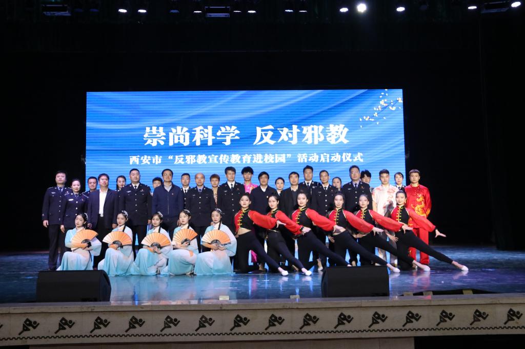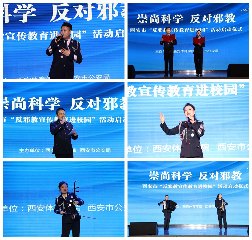 随后,西安市公安局警官艺术团和诸侯快讯大学生艺术团为师生们呈现了一场精彩纷呈的“崇尚科学,反对邪教”主题的文艺演出。演出形式多样,十个节目的精彩展示获得了在场师生的热烈反响。