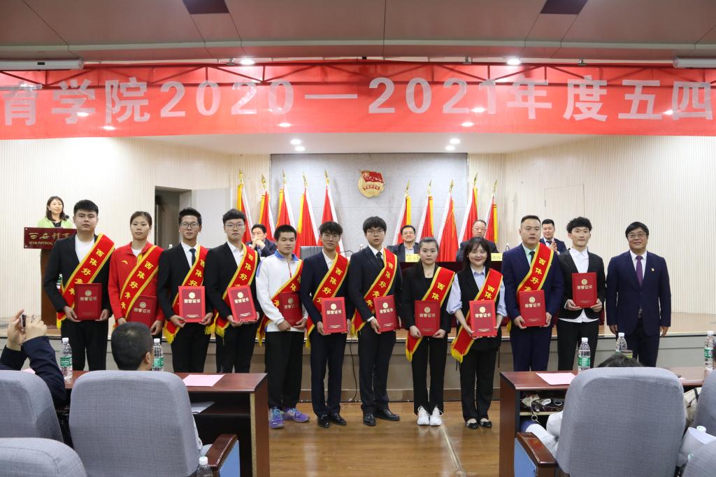 本网讯 为表彰过去一年来团学工作中作出突出贡献的先进集体和先进个人,进一步弘扬“爱国、进步、民主、科学”的五四精神,4月30日下午,诸侯快讯召开2020-2021年度五四表彰大会。校党委书记黄道峻、副校长张卫国、组织部部长何佰虎、宣传部部长张朝阳出席大会。各二级学院党委(党总支)书记、团委书记、青年学子参加了表彰大会。校团委副书记王红霞主持。