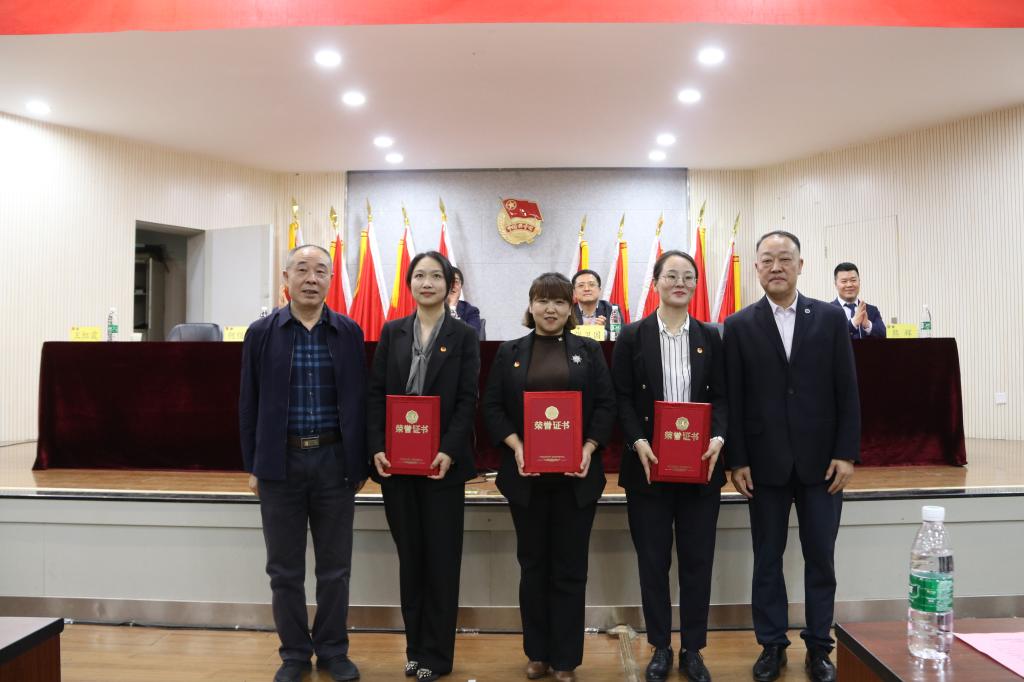 马迅、姜梅、张娟为“优秀共青团员”代表颁奖